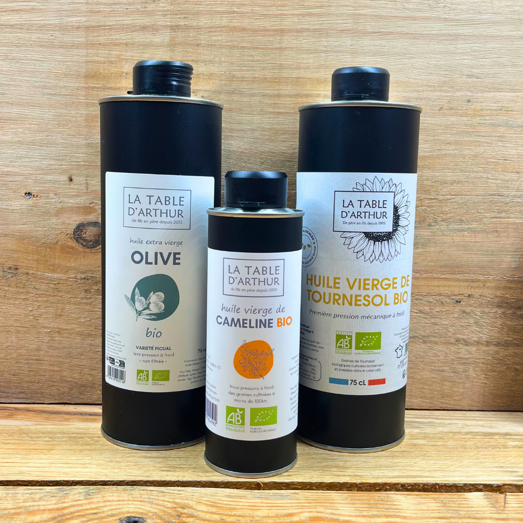 C’est pour cela que je me suis lancé dans le projet fou de presser des graines de différentes huiles bio pour vous offrir une huile 100% locale, d’une qualité exceptionnelle ! Des huiles vierge, de qualité alimentaire pour assaisonner et parfumer vos plats froids et vos salades !”