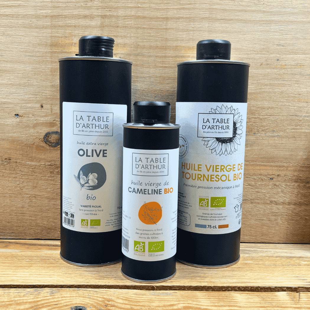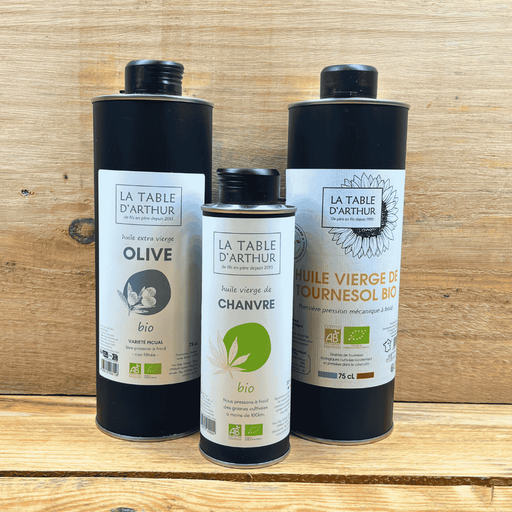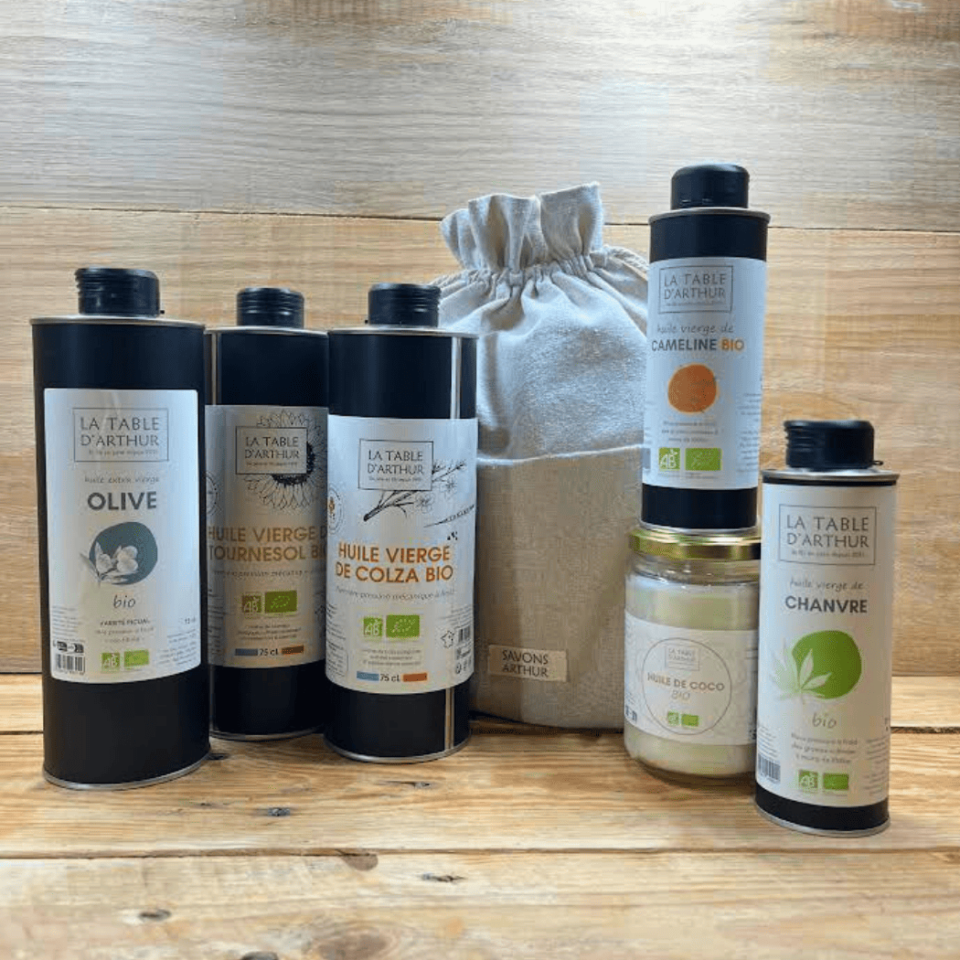 Nos huiles AB (sauf olive) sont pressées mécaniquement à froid, par nos soins, directement à la savonnerie.