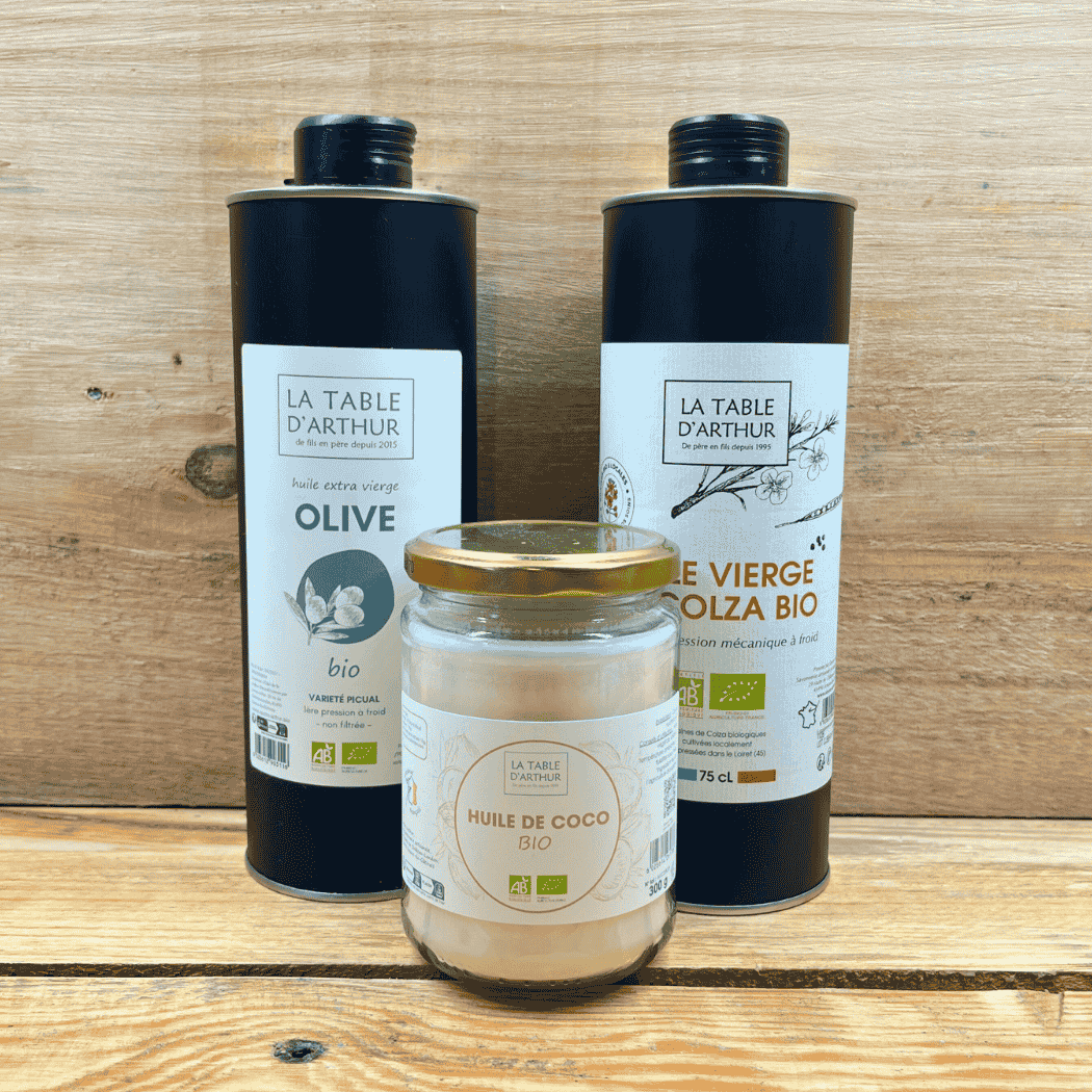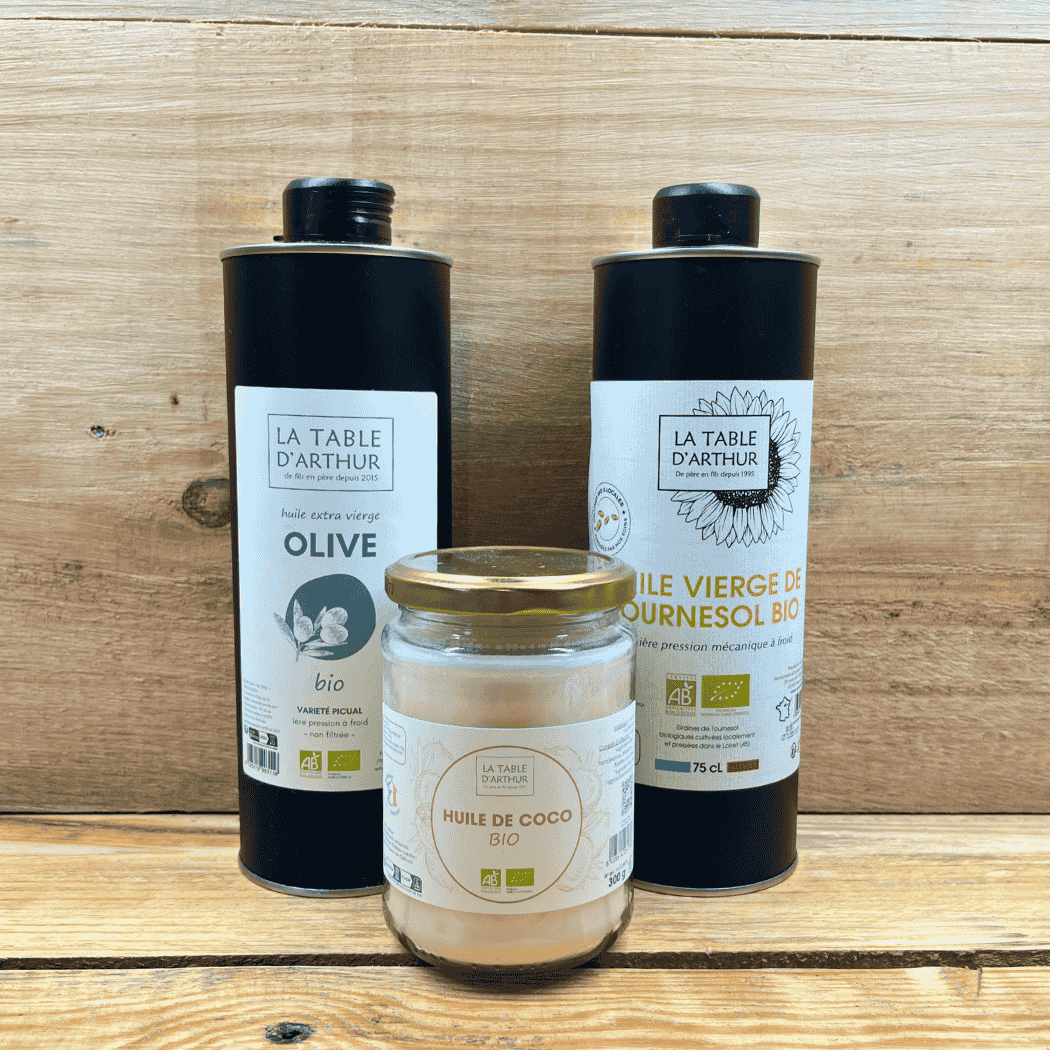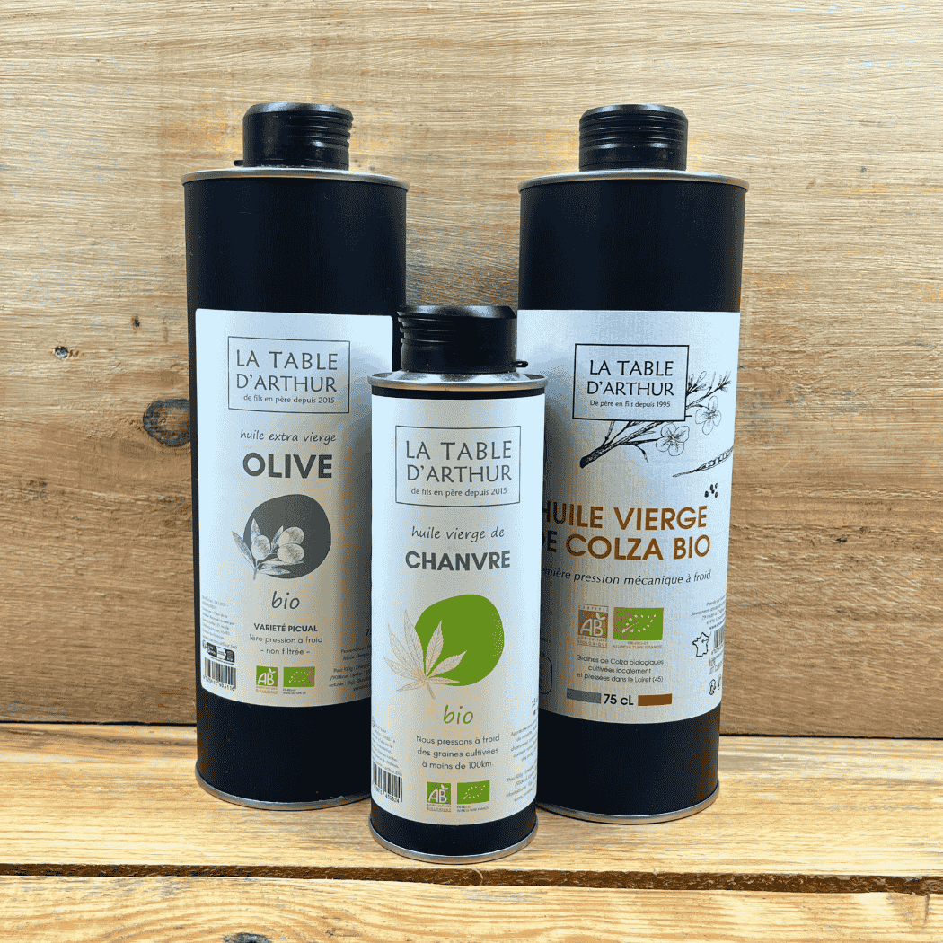 Nos huiles AB (sauf olive) sont pressées mécaniquement à froid, par nos soins, directement à la savonnerie.